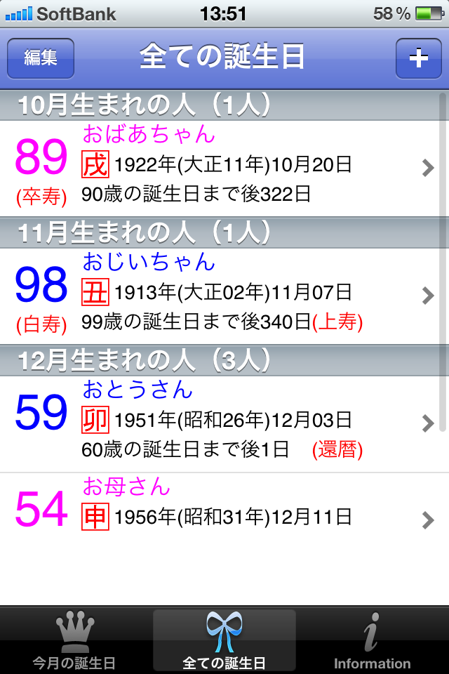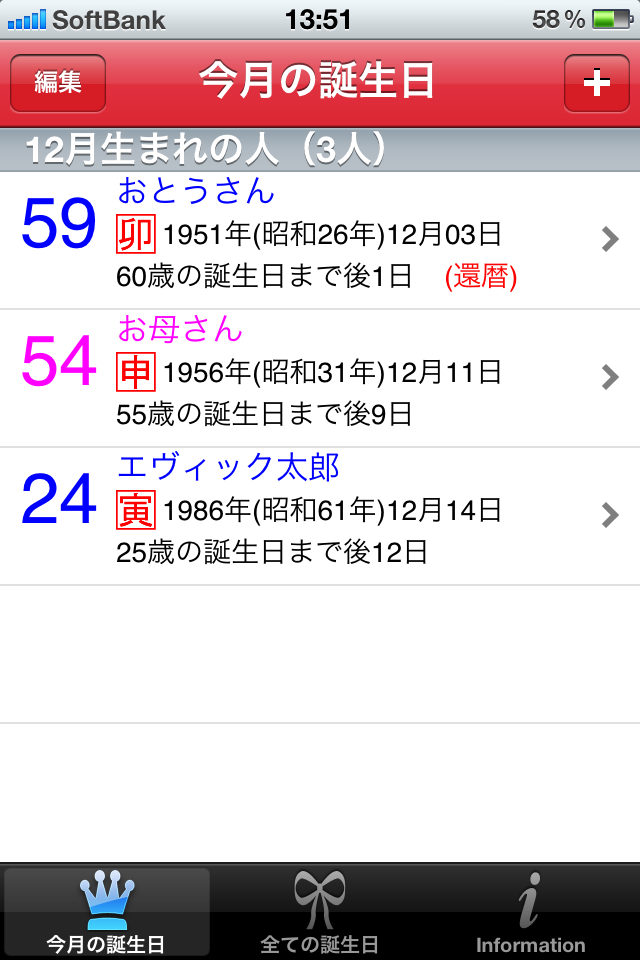 このアプリは、覚えておきたい人達の誕生日を記録するだけでなく、