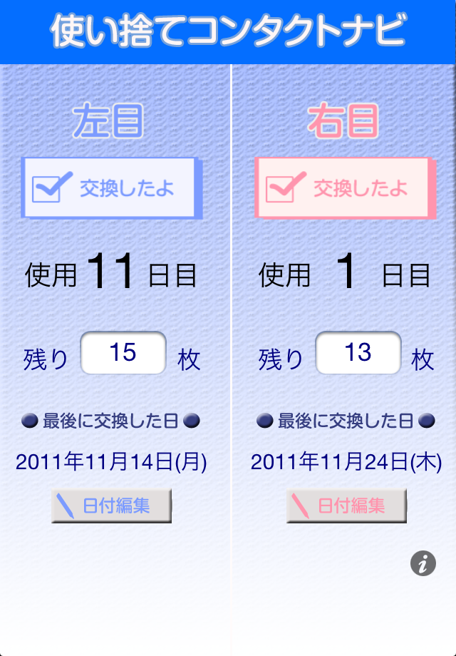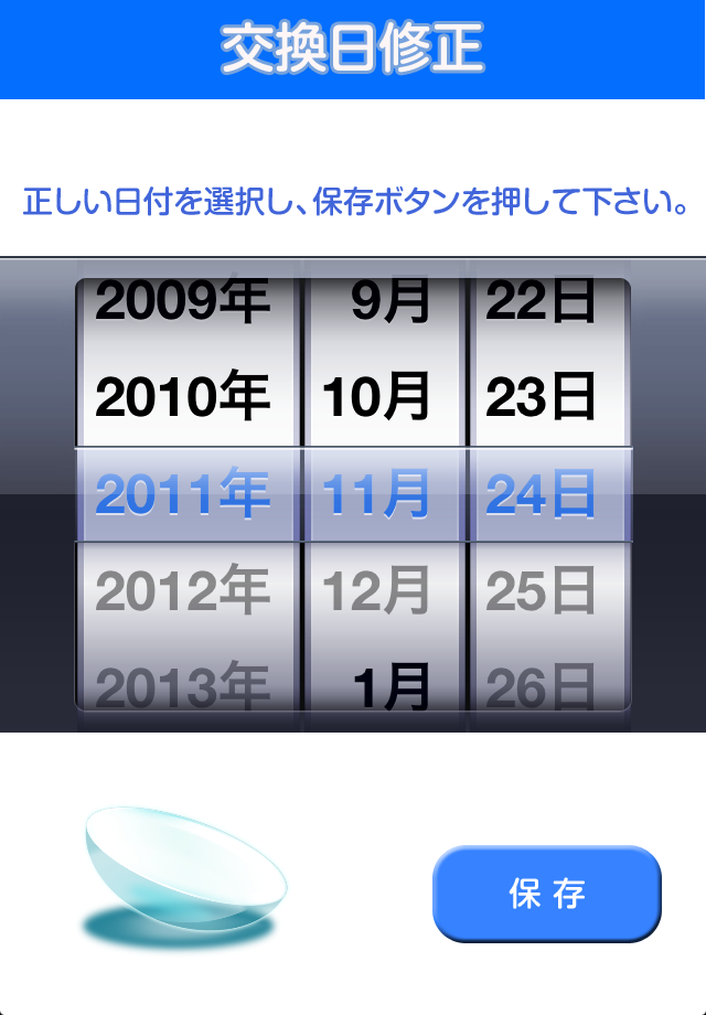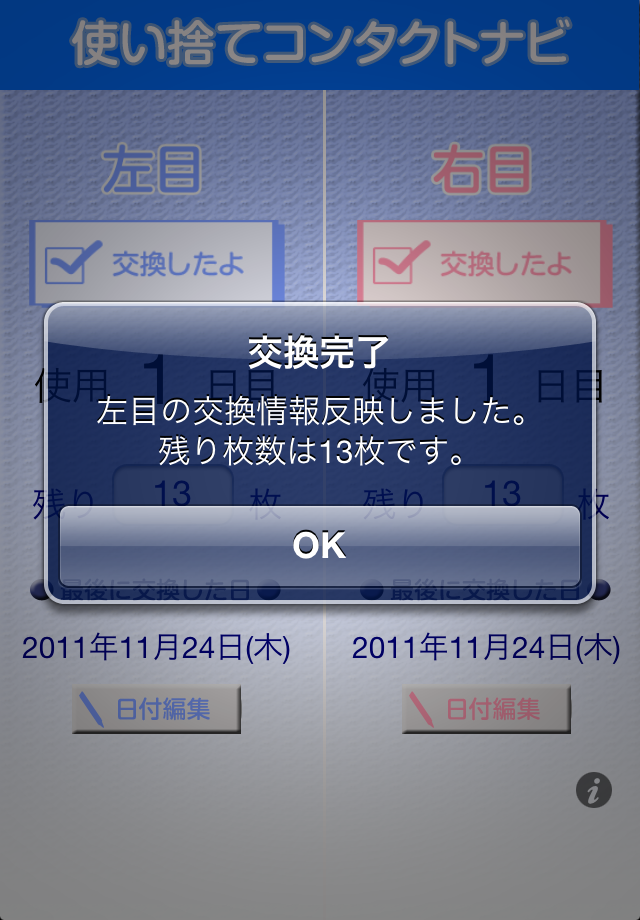 レンズを交換した日に「交換したよ」ボタンを押しておけば、